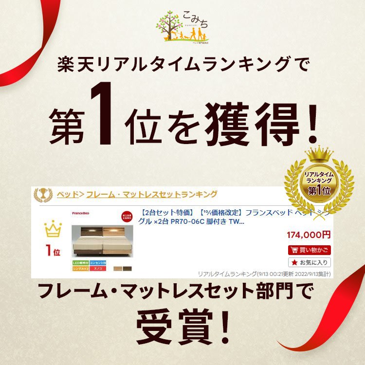 Home / ランキング受賞 / フランスベッド 創立70周年記念モデル PR70-06C TW-010α 楽天市場 ランキング1位 受賞!