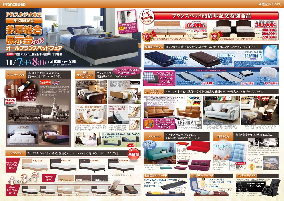 ※フランスベッドの展示会情報は、当店でご案内が出来る「東京・神奈川、埼玉エリア」のみの掲載していますが、