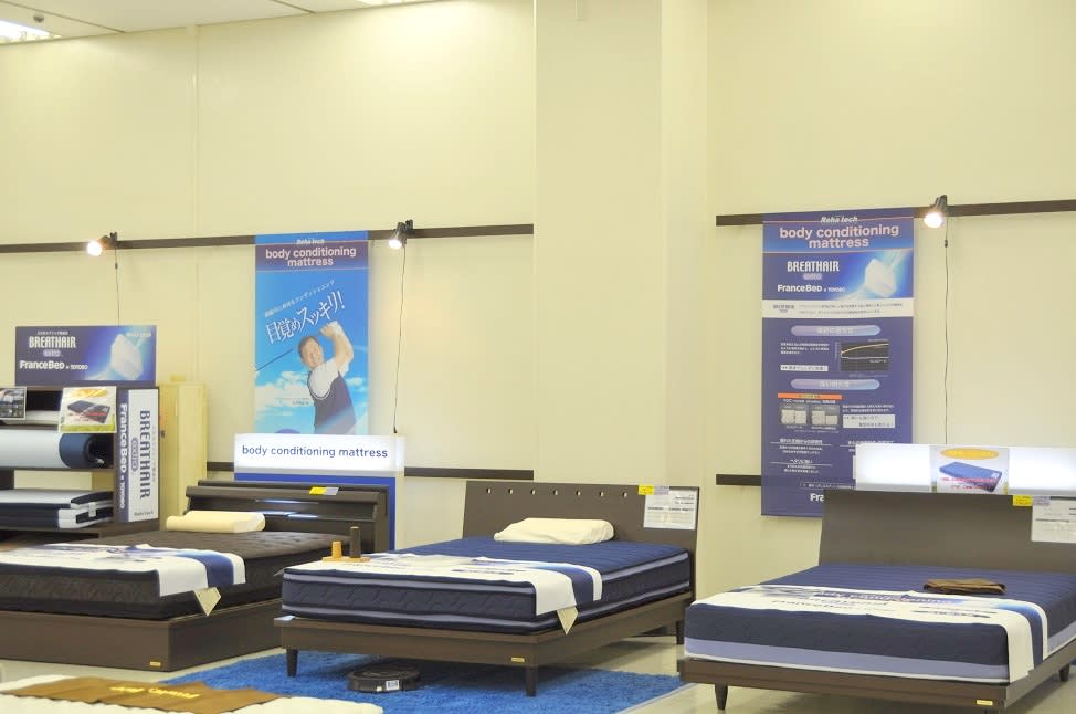 フランスベッドの人気商品から新作商品、お買い得商品まで幅広く展示され、