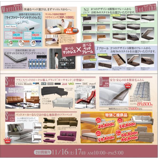 展示商品:ベッド、マットレス、ソファ、ソファベッド、パーソナルチェア、羽毛布団、寝装品等