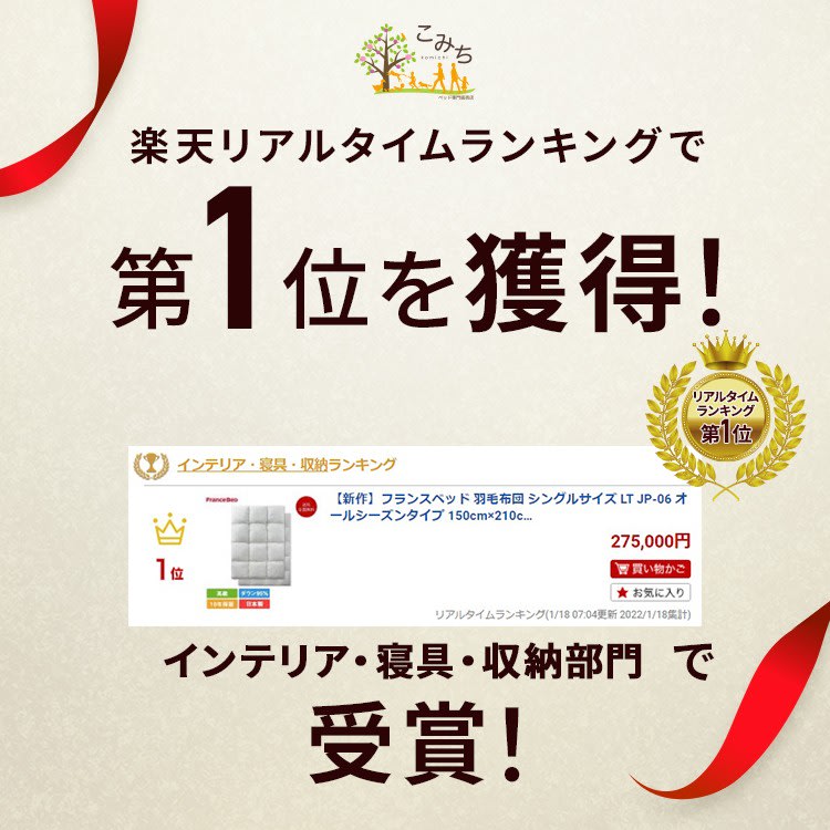 Home / ランキング受賞 / フランスベッド 高級羽毛布団 LT JP-06 楽天ランキング1位受賞!