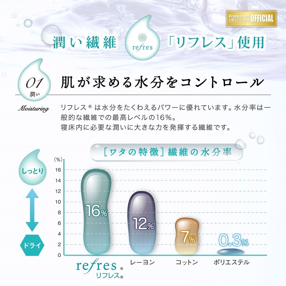 柔らかい素材となっています。生地には水分率の高い繊維「リフレス」が使用され、