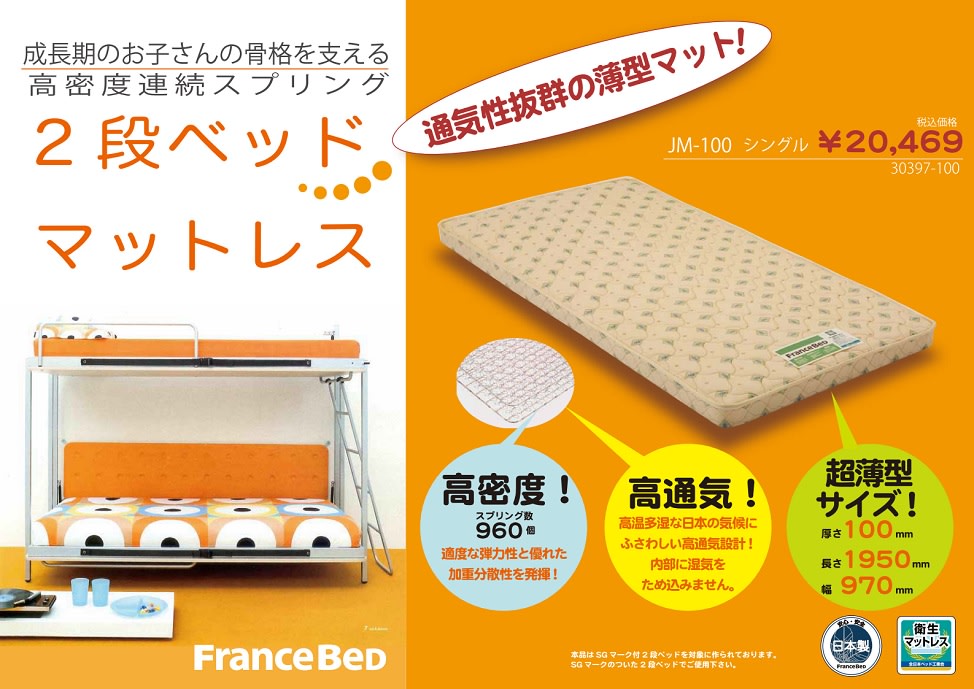 「二段ベッド専用マットレス」です。今までの常識を覆し、薄型でありながら