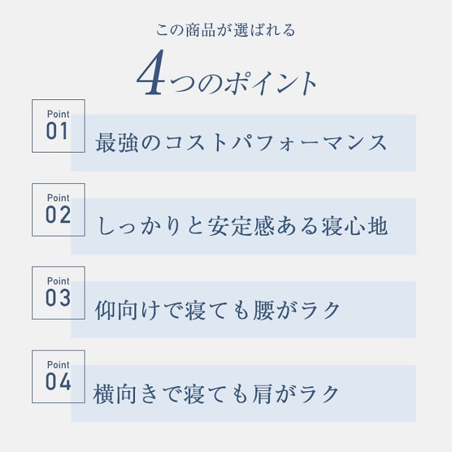 肩が楽に寝られます。価格は抑えつつ、快適な寝心地を得たい方にオススメです。
