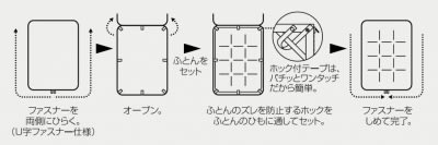 (表地と裏地が分離し、掛け布団の出し入れが容易になっています)