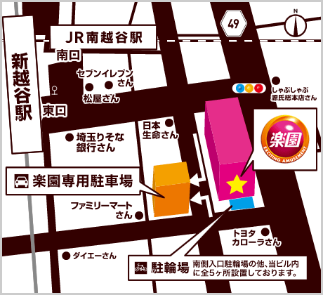 ※JR武蔵野線南越谷駅南口、東武伊勢崎線新越谷駅東口より徒歩3分