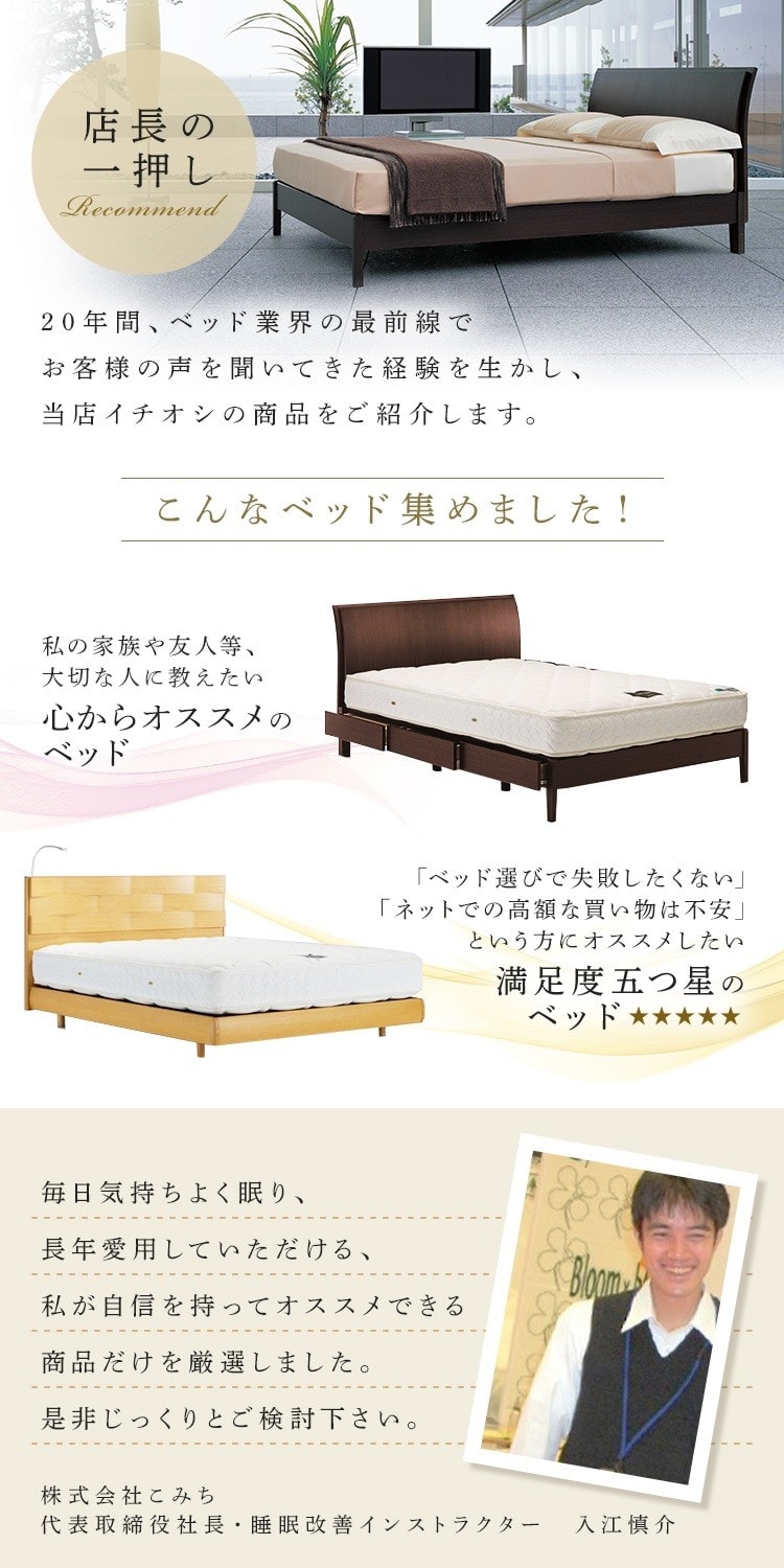 ベッドのことなら何でもおまかせ、「ベッド専門販売店こみち」です。