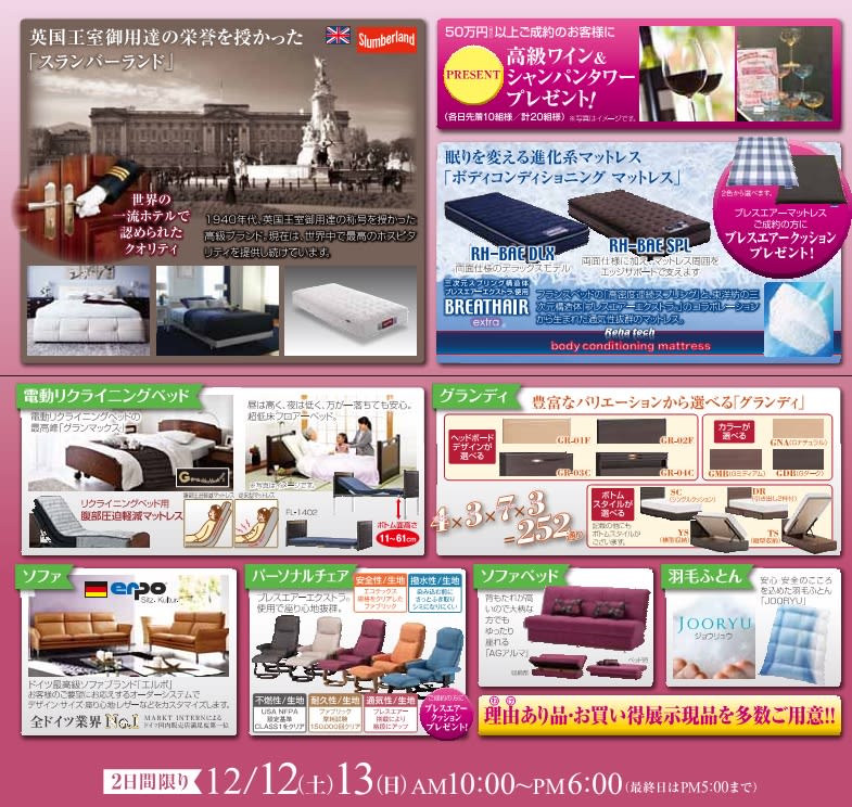 国内最大手ベッドメーカー フランスベッド主催のお得な大セール