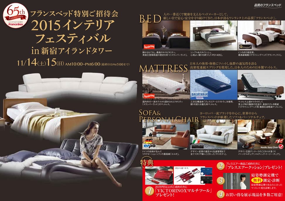 国内最大手ベッドメーカー フランスベッド主催のお得な大セール