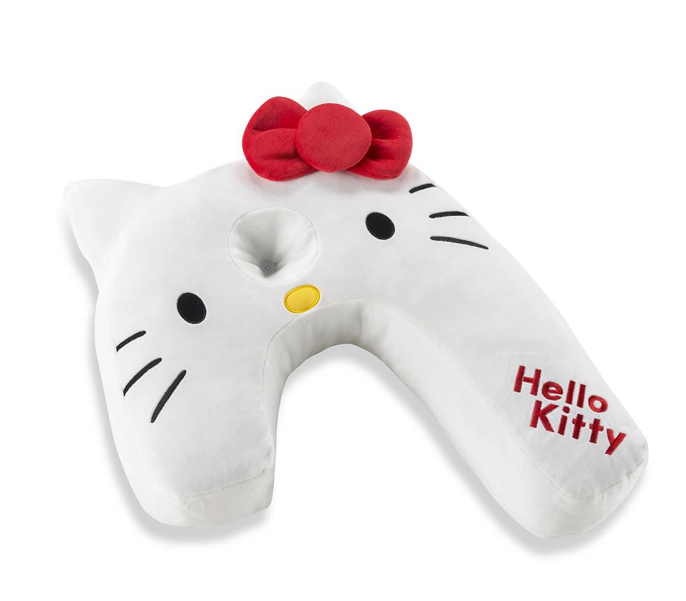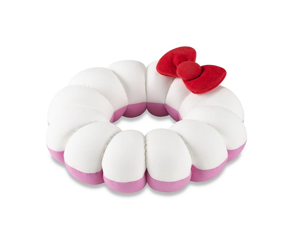 「ハローキティ」をモチーフにした耳のついたデザインや、可愛らしい赤いリボンが特徴的です。