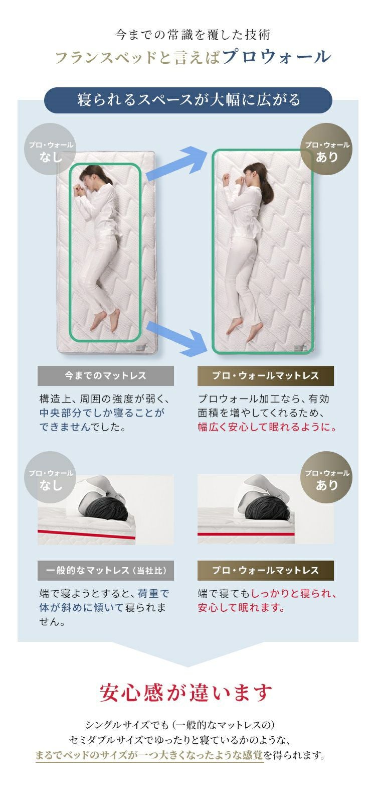 他の画像を見る 8%オフ対象商品 抜群のコスパ、抜群の寝心地!端までしっかりと寝られる、 フランスベッドが誇る最高技術を使用した 限定お買い得マットレス 正規品 フランスベッド マットレス TW-106Ag PW-MON | ベッド ベッドマットレス プロウォール モアリー 除菌 キュリエスエージー シングル セミダブル ダブル ワイドダブル セミシングル 販売価格 ¥ 146,300 税込 〜 販売価格 ¥ 税込 詳細を見る お気に入りに登録する