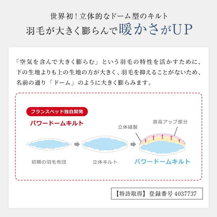 他の画像を見る 20%オフ対象商品 当店一押し!フランスベッドが誇る最高技術を使用!ふわふわ軽くて暖かい!羽毛産地の最高峰・ポーランド産ホワイトグースダウン95%を使用した フランスベッド 高級羽毛布団 フランスベッド 羽毛布団 CS-04 AS オールシーズン タイプ | 正規品 羽毛ふとん グース ホワイトグースダウン ホワイトグース 暖かい 二枚合わせ 2枚合わせ 日本製 国産 JOORYU ホワイトグースダウン95 羽毛布団 パワードーム 高級羽毛布団 シングル ダブル クイーン 販売価格 ¥ 335,500 税込 〜 販売価格 ¥ 税込 詳細を見る お気に入りに登録する