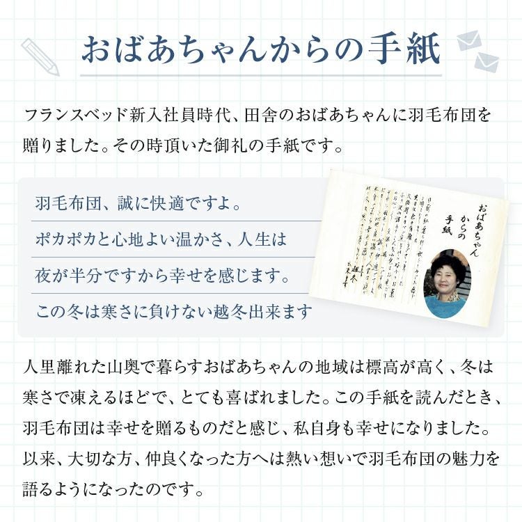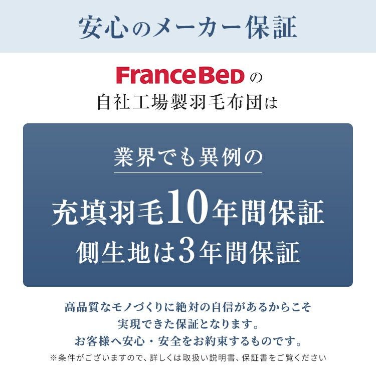 他の画像を見る 15%オフ対象商品 羽毛産地の最高峰・ポーランド産ホワイトグースダウン95%を使用!ふわふわ軽くてあたたかい フランスベッド 羽毛布団 フランスベッド 羽毛布団 CS-03 AS オールシーズン タイプ | 正規品フランスベッド製 羽毛ふとん グース ホワイトグースダウン ホワイトグース 暖かい 二枚合わせ 日本製 国産 JOORYU 掛け布団 かけ布団 掛布団 軽い ホワイトグースダウン95 シングル ダブル クイーン 販売価格 ¥ 297,000 税込 〜 販売価格 ¥ 税込 詳細を見る お気に入りに登録する