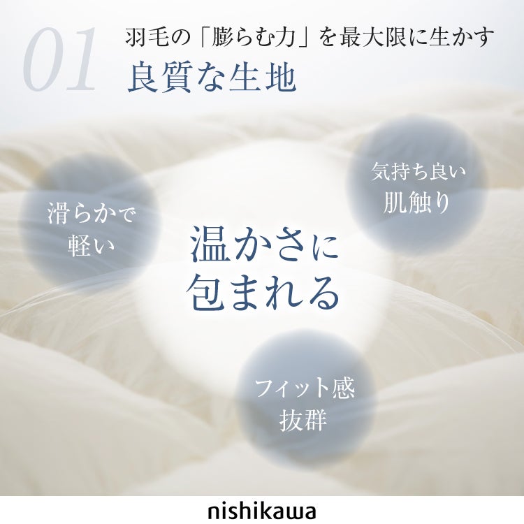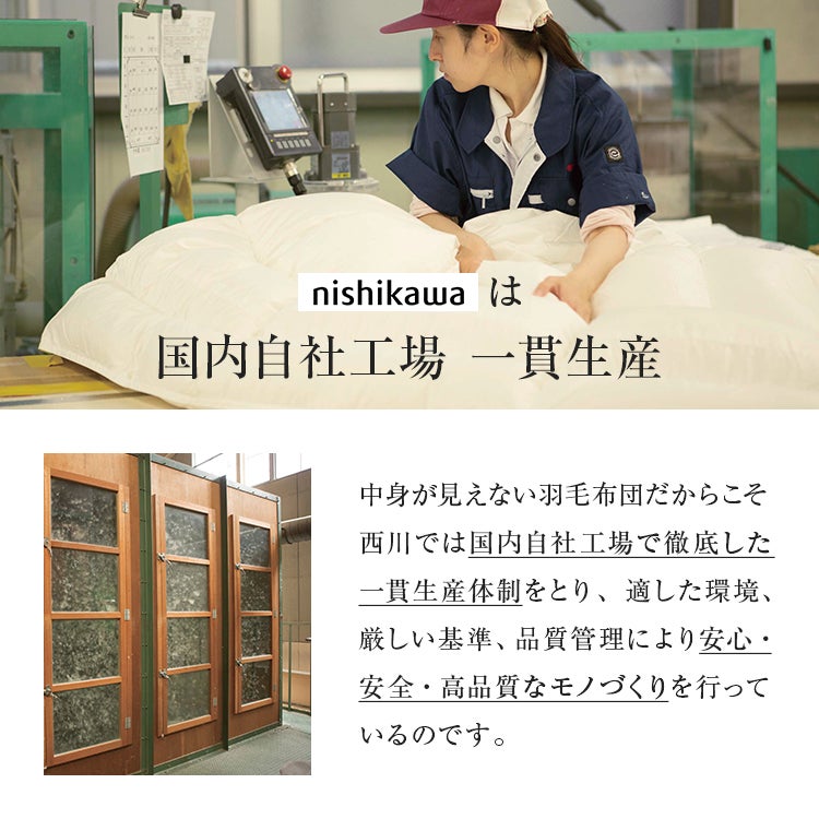 他の画像を見る 20%オフ対象商品 ふわふわ軽くて暖かく、最高の寝心地!安心・安全・高品質の国内自社工場一貫生産!ポーランド産ホワイトグースダウン95%を使用した 西川の「顔」となる高級羽毛布団 正規品 西川 羽毛布団 シングル NP7053 | 西川製 nishikawapremium 羽毛ふとん 本掛け 日本製 国産 高級 高級羽毛布団 掛け布団 かけ布団 掛布団 ポーランド産 ホワイトグースダウン95% 販売価格 ¥ 275,000 税込 詳細を見る お気に入りに登録する