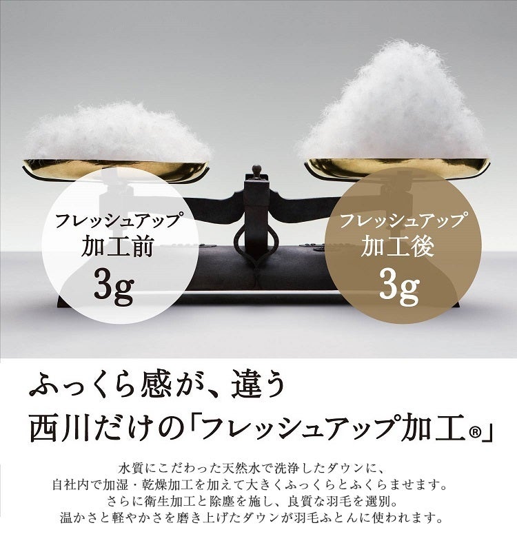 他の画像を見る 20%オフ対象商品 抜群の寝心地 西川 羽毛布団 | 西川製 羽毛 羽毛ふとん 西川プレミアム nishikawa 日本製 国産 西川 羽毛布団 セミダブル NP7052 175cm×210cm | 正規品 西川製 羽毛布団 日本製 ポーランド産 ホワイトグース ダウン 93% セミダブルロング 本掛け 西川プレミアム nishikawa premium 販売価格 ¥ 257,400 税込 詳細を見る お気に入りに登録する